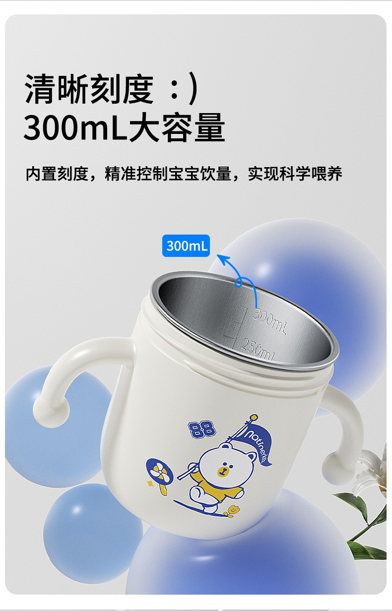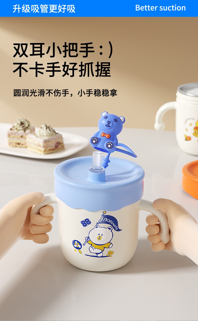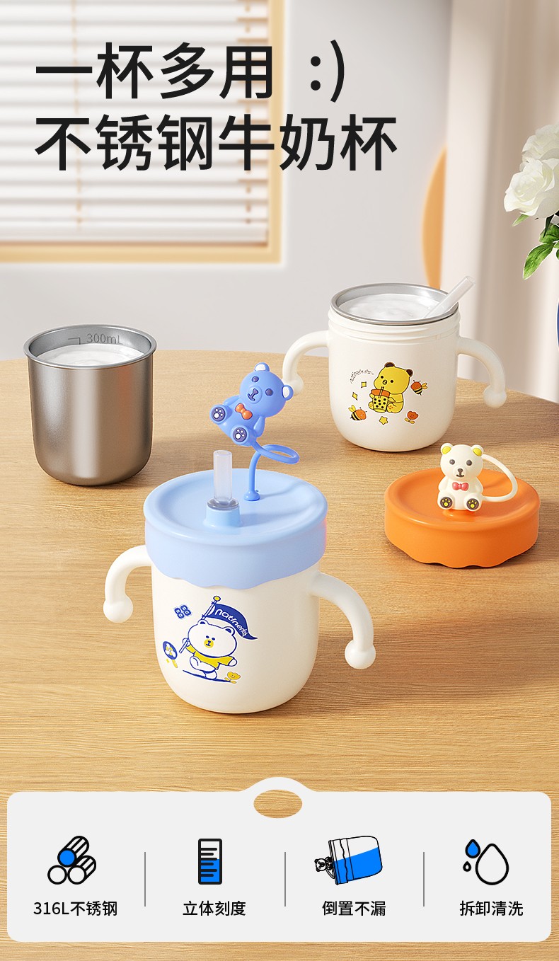 奈挺尔儿童牛奶杯刻度家用直饮奶瓶1一3岁以上宝宝喝奶喝水吸管杯