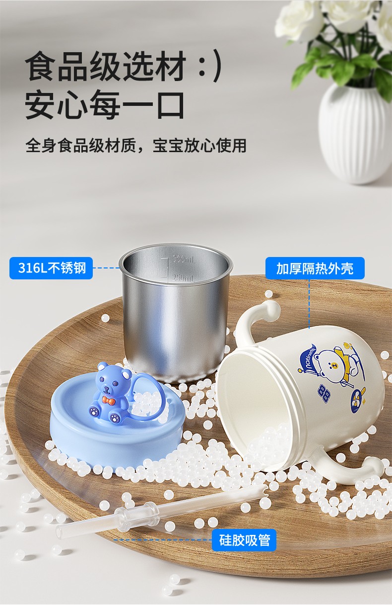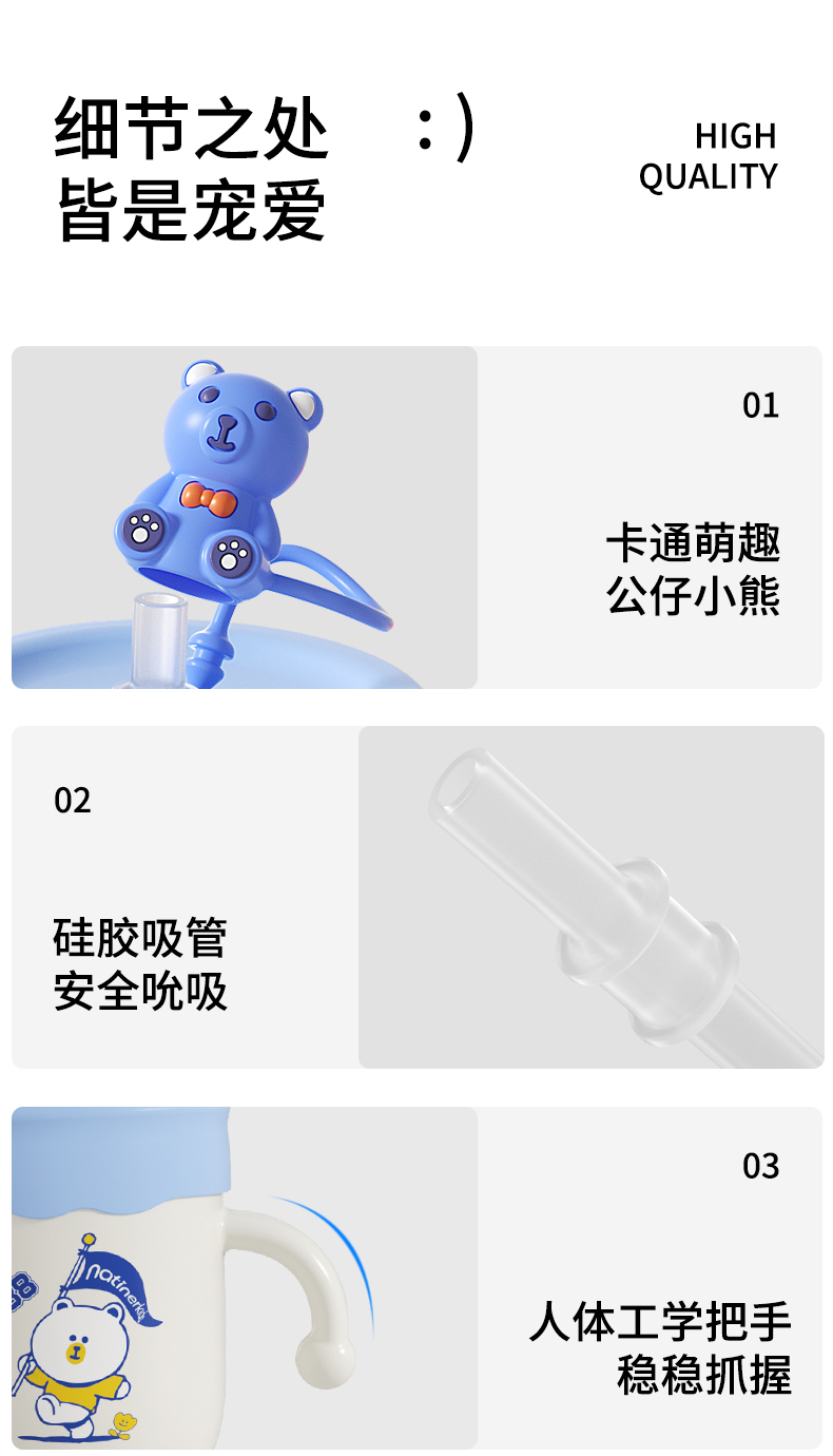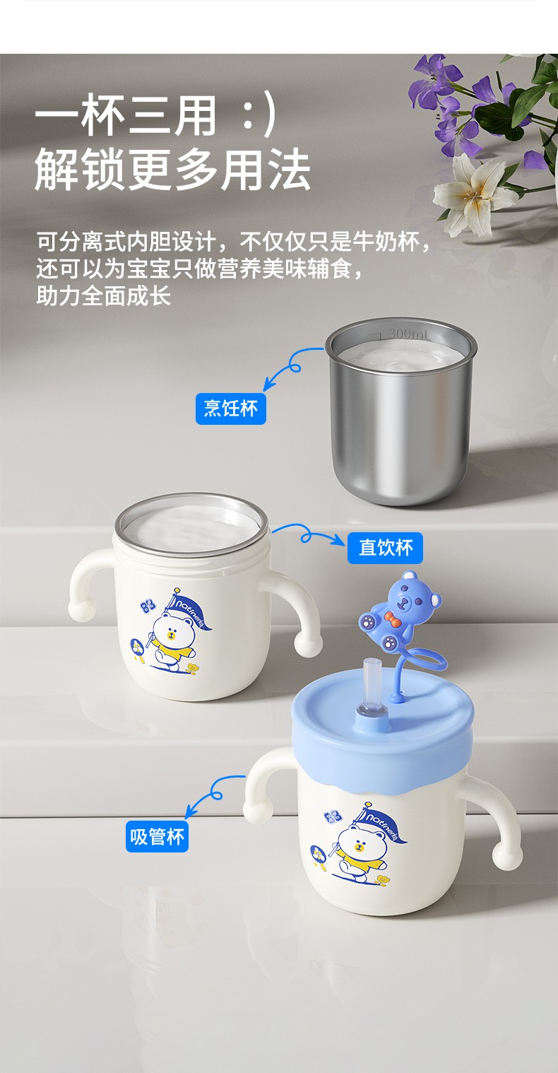 奈挺尔儿童牛奶杯刻度家用直饮奶瓶1一3岁以上宝宝喝奶喝水吸管杯