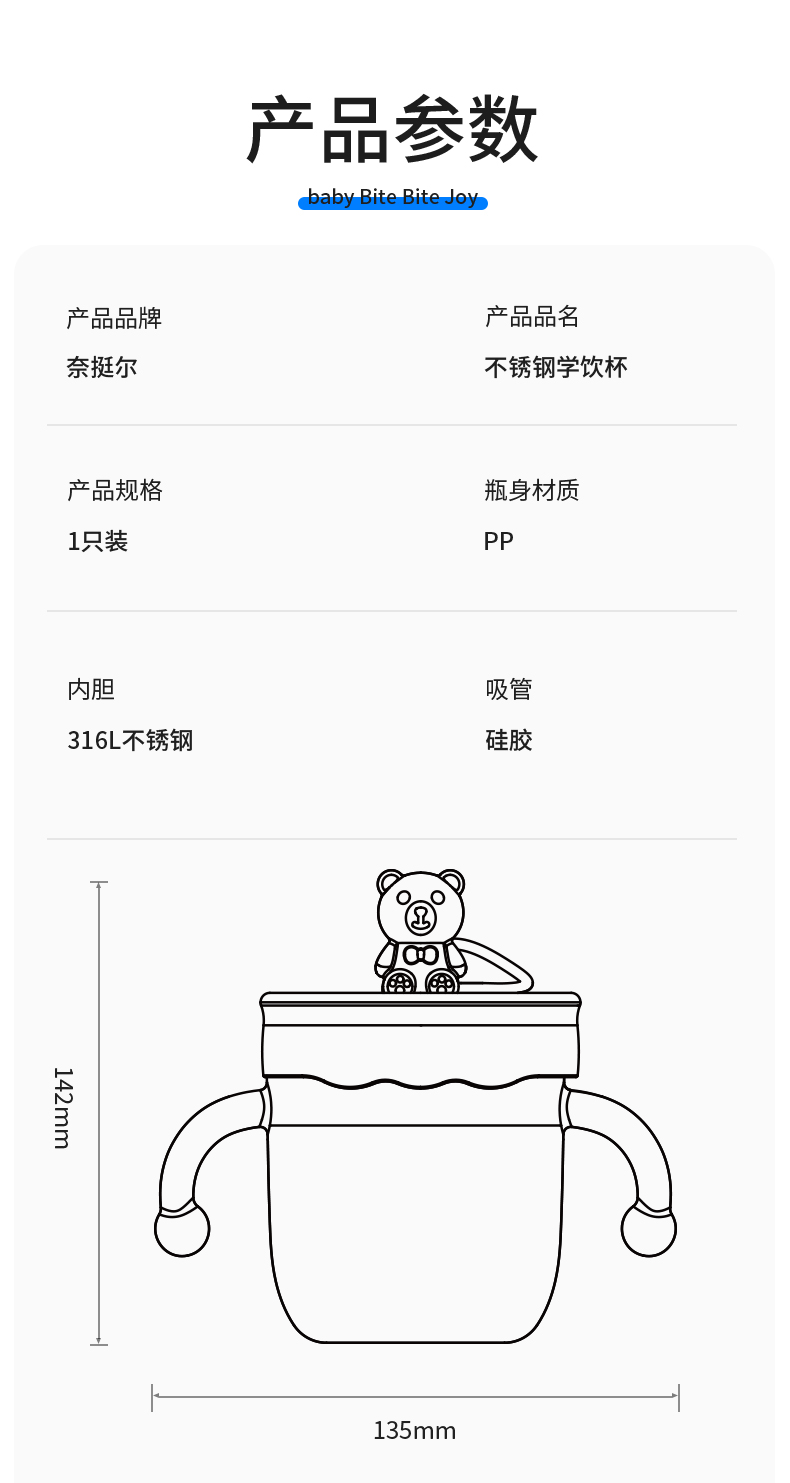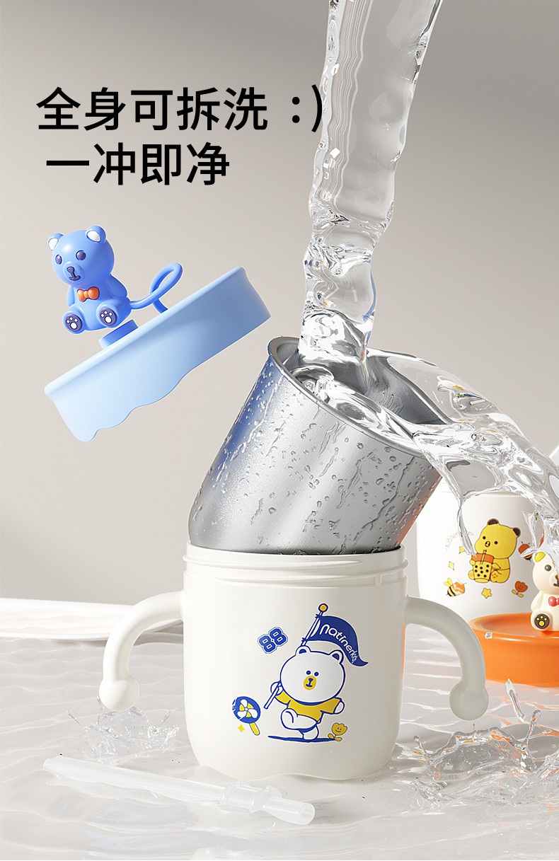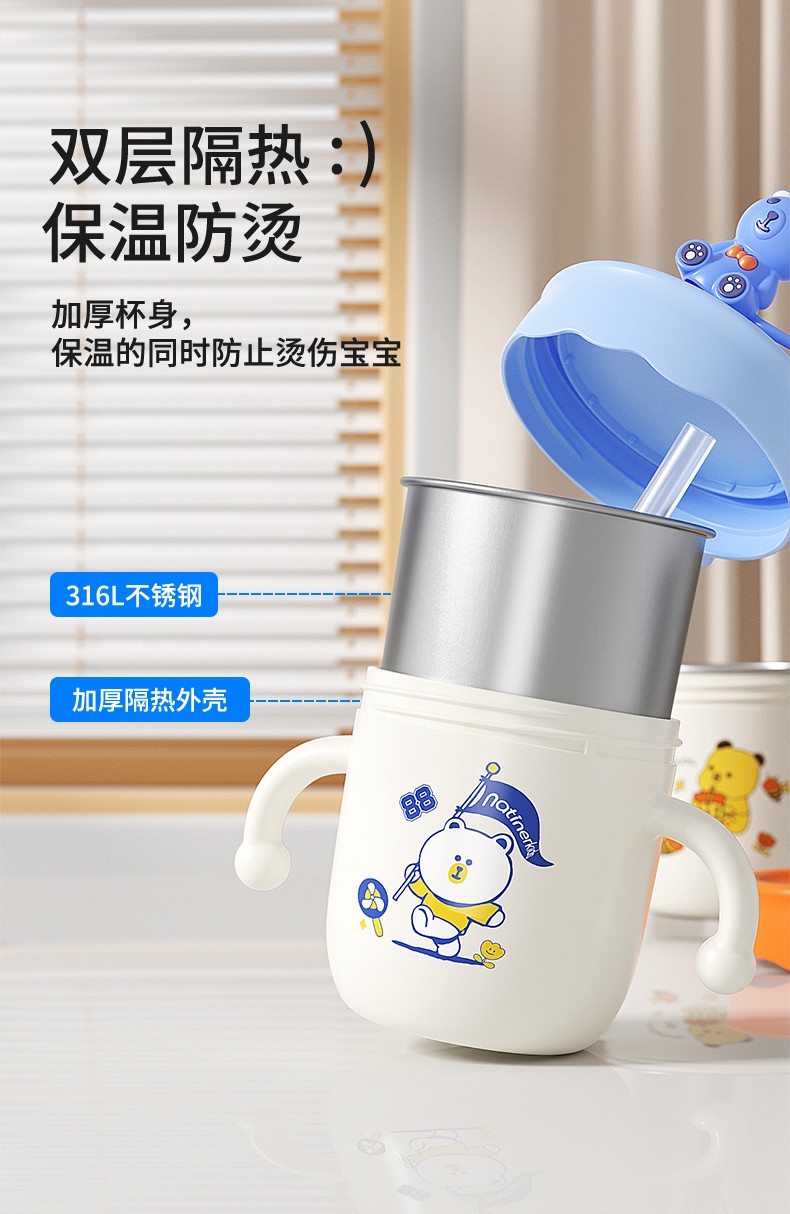 奈挺尔儿童水杯宝宝喝水杯双饮杯家用户外出幼儿园专用吸管直饮杯